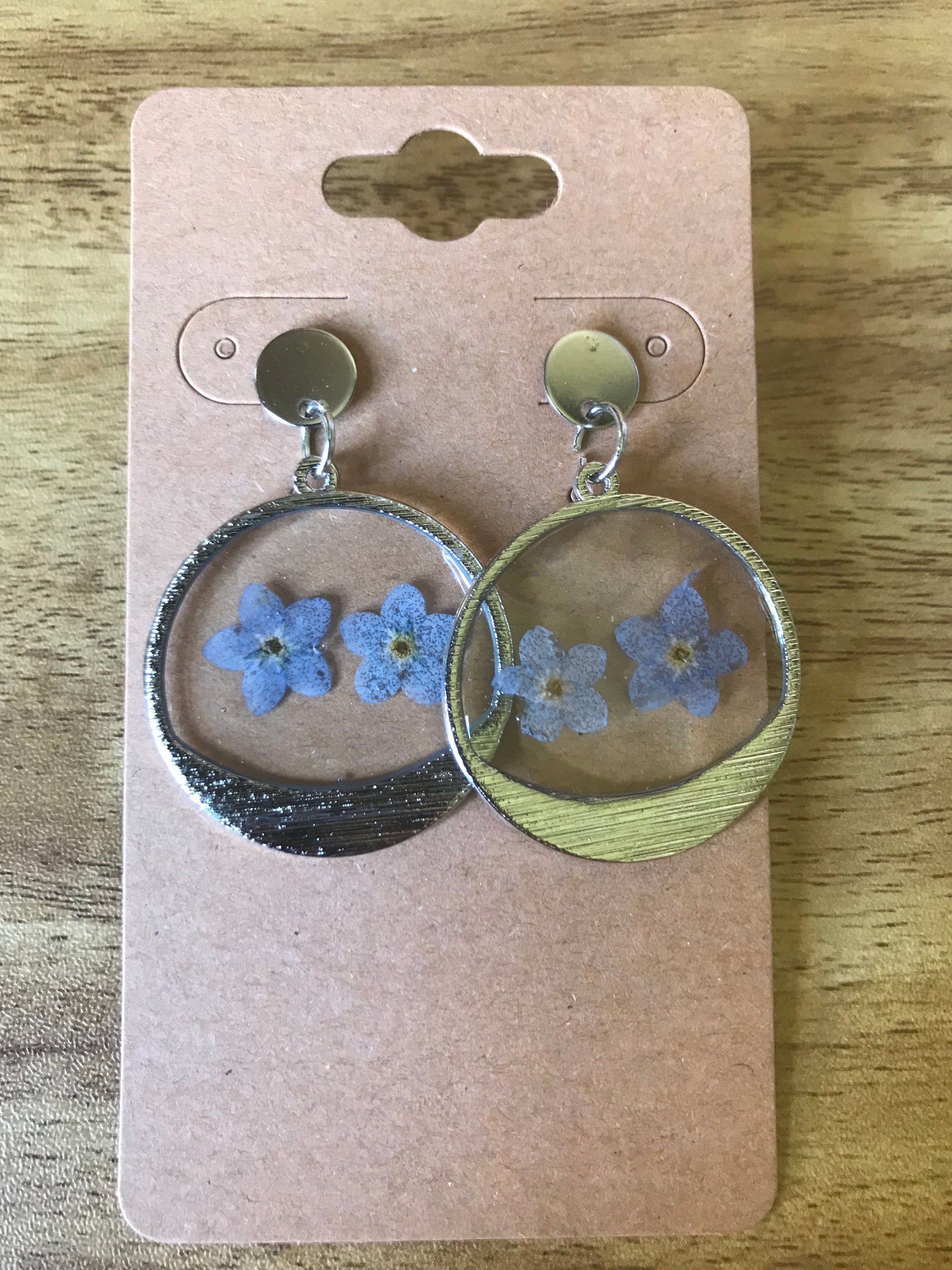 Forget-me-not earrings, small sized with silver circles on top. Uniquely individual, hand made. Perfect for your summer outfits! ☀️