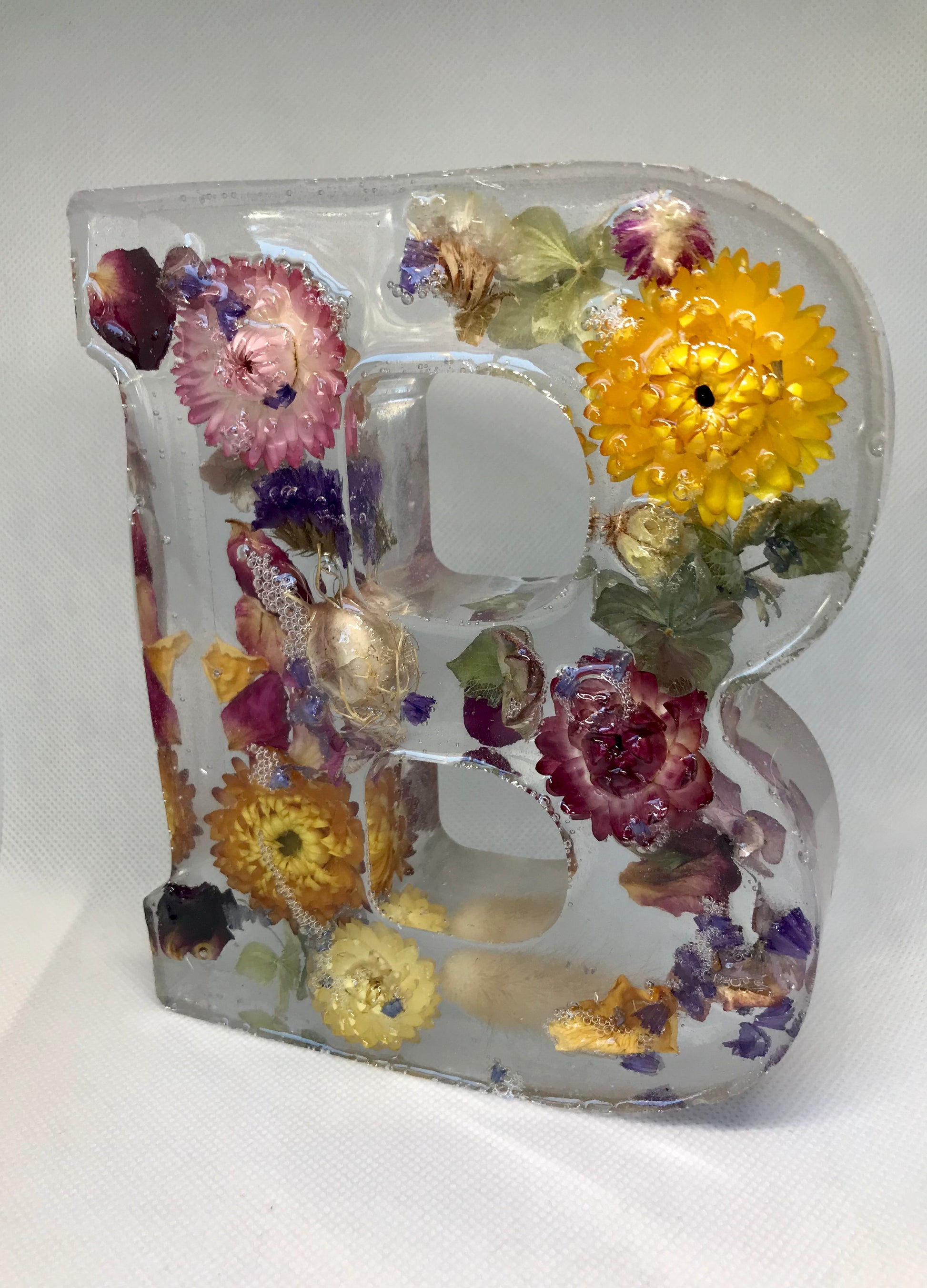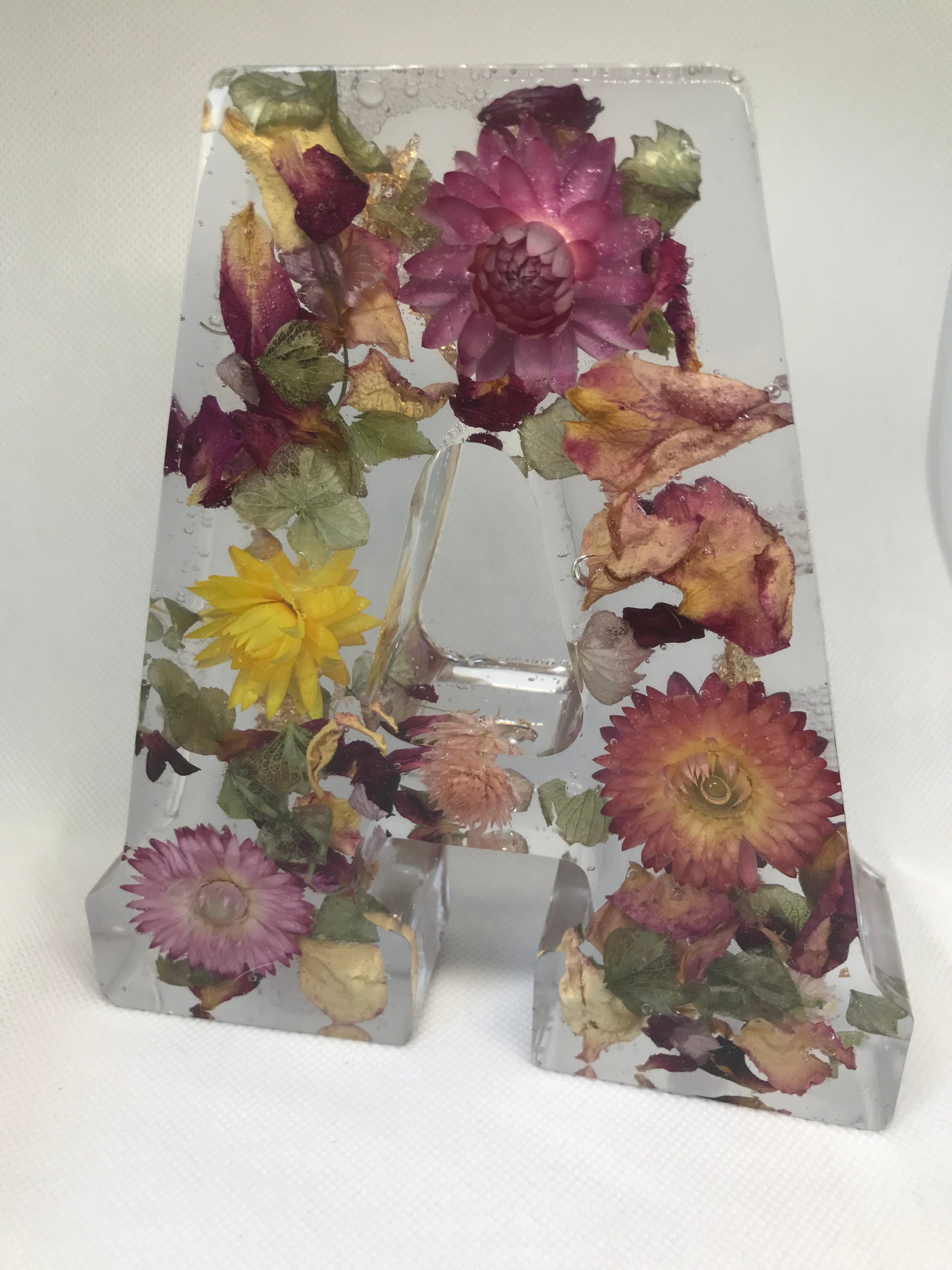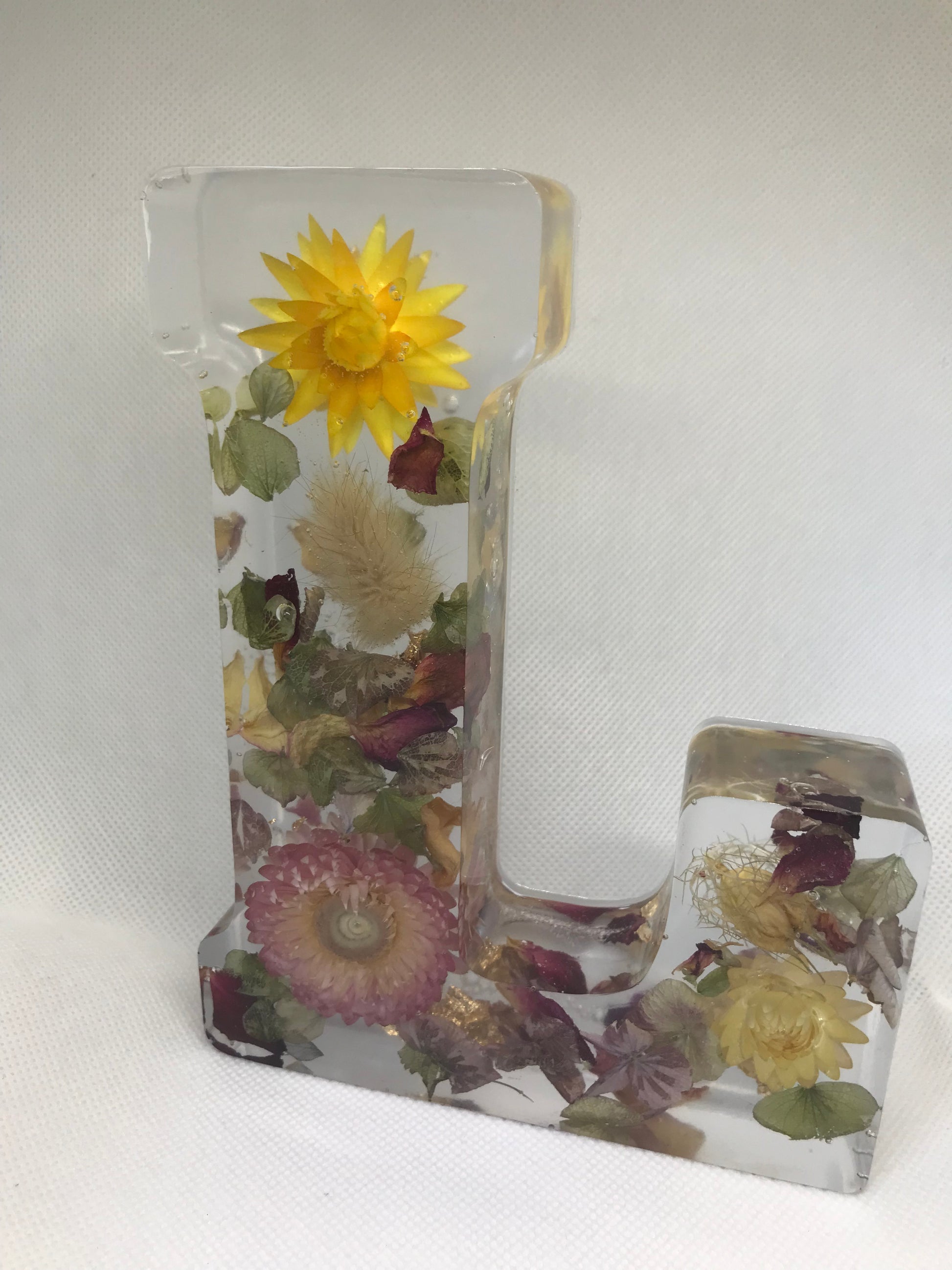 Large individual letters with pressed flowers, handmade. Perfect as a present, for a girls bedroom or oasis a statement piece on the bookcase! Letters stand approximately 17cm high.